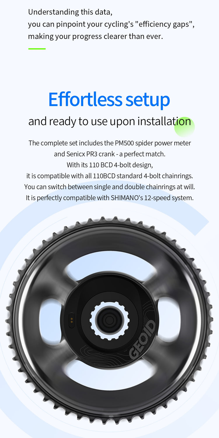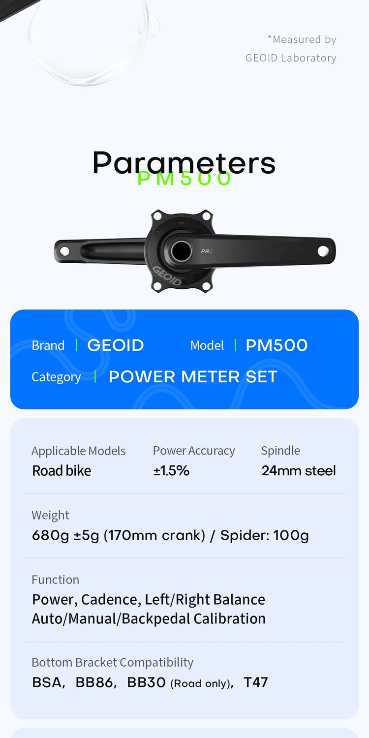 With its cost-effective design that balances reliability and compatibility, the GEOID PM500 delivers professional-grade, high-value power measurement at its core. It helps you unlock scientific entry-level cycling, whether for daily rides, club group rides, or beginner races.